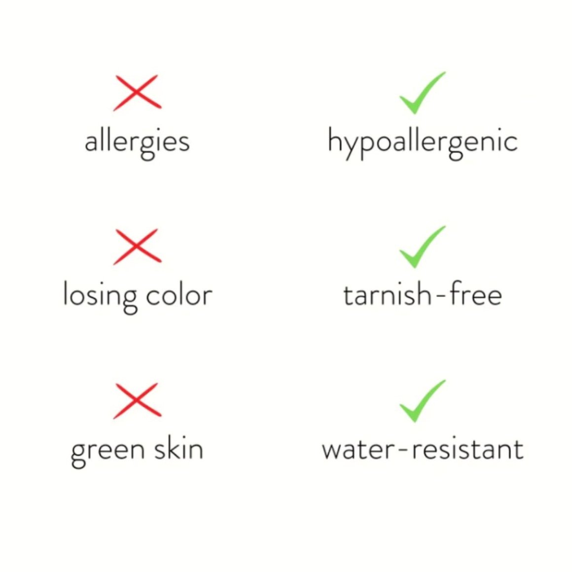 ★★★★★Obsessed with the quality! I was looking for a waterproof ring for the beach, and these are perfect. I’ve worn it swimming in the ocean several times now and it still looks brand new. No green fingers! Love it.